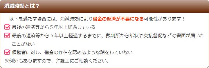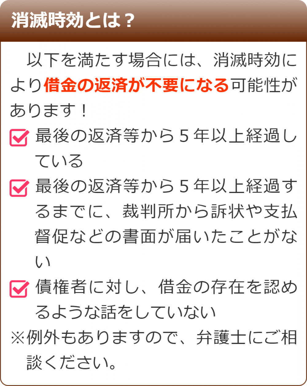 借金を一定期間以上返済しておらず、その間裁判上の請求等がなかった場合には、時効の援用により借金の返済をしなくてもよくなる可能性があります。