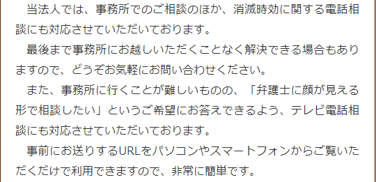 時効の援用を含め、借金のご相談については、まずは電話相談やオンライン相談をご利用いただくということも可能です。